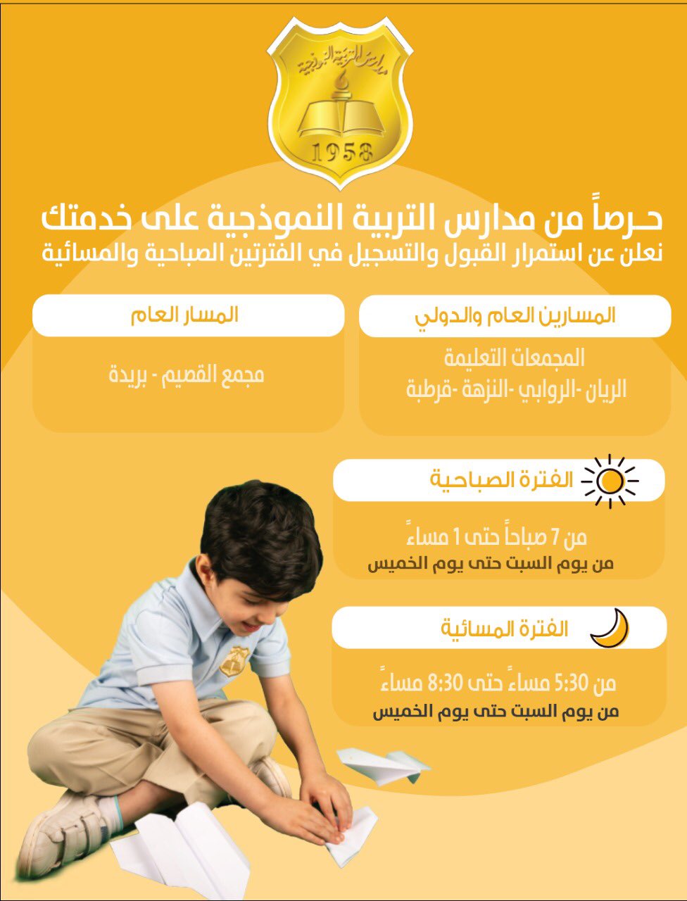 مدارس التربية النمـوذجيـة On Twitter حرص ا منا على خدمتكم نسعد بحضوركم يوم السبت لإتمام القبول والتسجيل